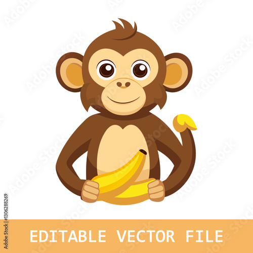 © Design Deck, Fototapeta premium monkey holding a banana with diaper and pacifier cartoon vector icon