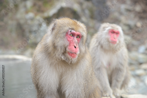 Naklejka premium Monkey in a natural onsen (hot spring), located in Jigokudani Monkey Park or...
