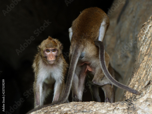 © srckomkrit, Naklejka premium Monkey in front of cave