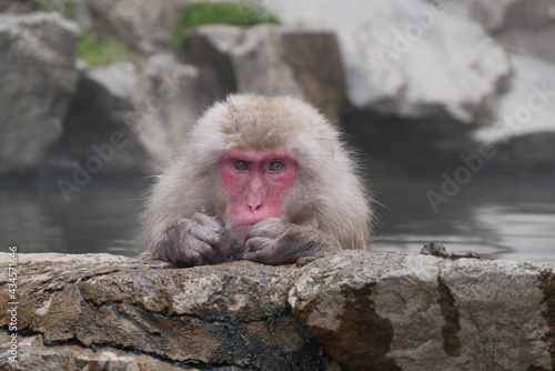 © さとう たかし, Naklejka premium Monkey in hot-spring (Famous Snow Monkey in Early Summer)