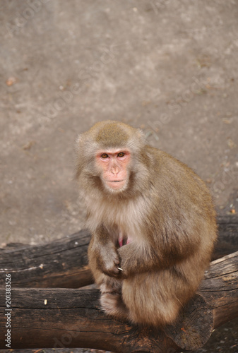 © Victor Lazarev, Naklejka premium Monkey in the Moscow zoo sits and looks around