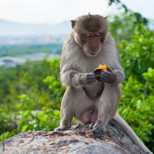 © mkmakingphotos, Naklejka premium monkey in the mountain with the high view