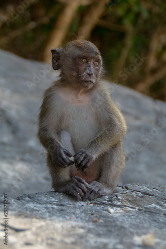 Naklejka premium Monkey in Tropical beach on Koh Phi Phi island, Thailand