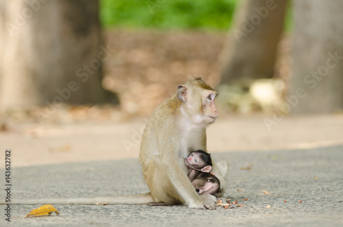 © Tongra, Obraz premium .Monkey is happily family.