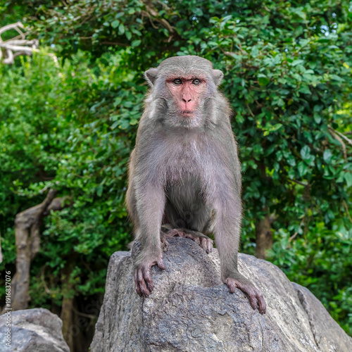 © kvdkz, Obraz premium Monkey is standing on a rock in a forest