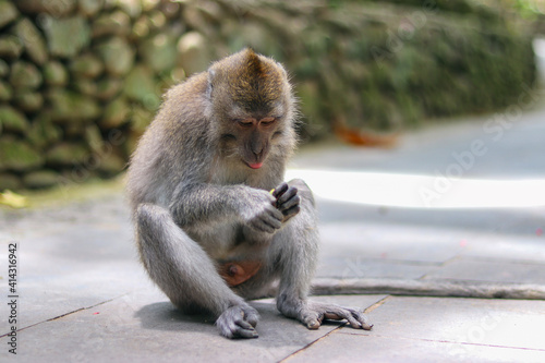 Fototapeta premium monkey japanese macaque baboon sitting on the ground
