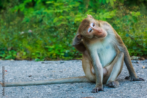 © ipletharathorn, Obraz premium Monkey Khao Ngoo stone Park Ratchaburi, Thailand.