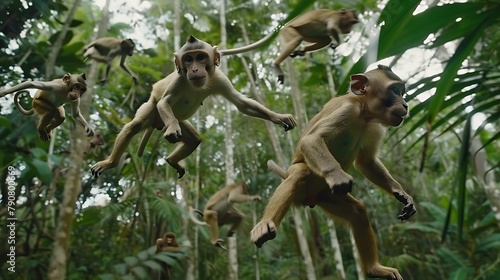 Fototapeta premium Monkey Merriment: A Troupe of Playful Monkeys Swinging Through the Canopy,...