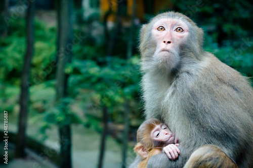 Fototapeta premium Monkey mother and baby