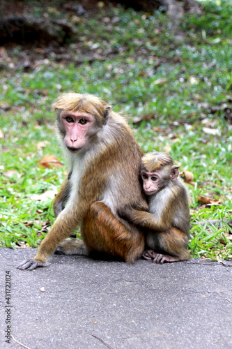 © Sophie, Fototapeta premium monkey mother and baby sri lanka
