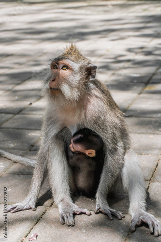 © Rafael, Obraz premium Monkey mother and child at Ubud Sacred Monkey Forest Sanctuary, Indonesia