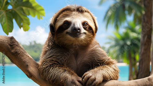 © JohnDesignHub, Fototapeta premium Monkey on a branch hiding face with hands