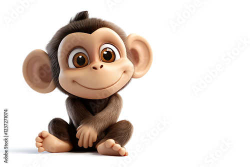 © Noufaldi, Obraz premium monkey on a white background, monkey on a blank white background, a monkey, monkey, cute monkey, white background, copy space for add text, 3d rendering, 3d, vector, AI generative