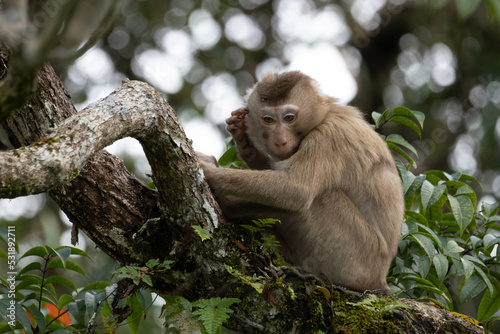 © Jatuporn, Fototapeta premium Monkey on the tree, monkey climbing a tree in the forest