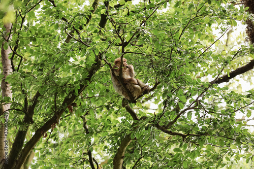 © Andriy Medvediuk, Fototapeta premium monkey on tree. beautiful monkey crawls on trees. selective focus