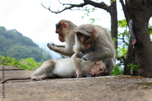 © pratik, Fototapeta premium monkey picking out bugs from another monkeys hair