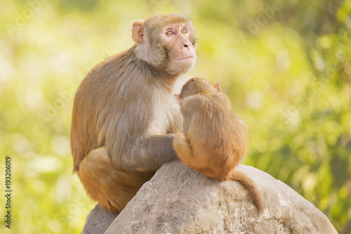 Fototapeta premium Monkey protecting baby monkey