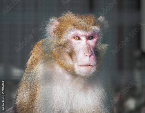 Obraz premium Monkey red at the sun close up