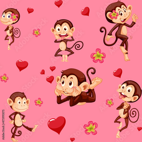 © GraphicsRF, Obraz premium Monkey seamless pattern background