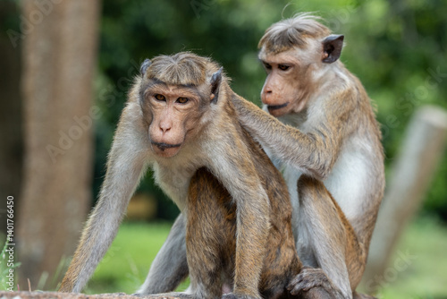 © Thisara, Naklejka premium Monkey searching bugs in his partner