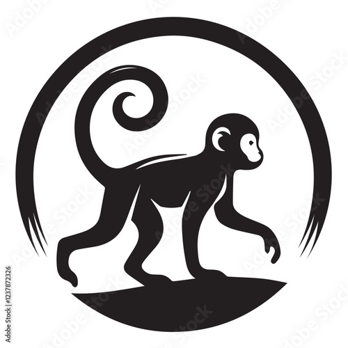 © Zidi Awan, Fototapeta premium Monkey silhouette black and white vector icon