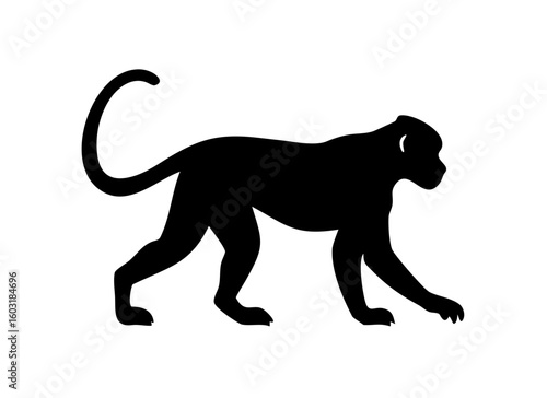 © zubaida, Obraz premium Monkey silhouette vector illustration. Black and white ape logo. Isolated on white background.