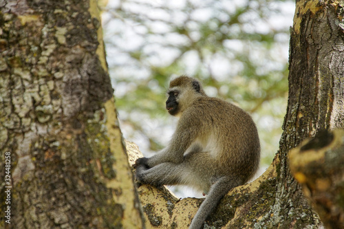 © Delvin, Obraz premium Monkey sitting in a fork of a tree