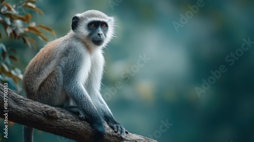 © Phlegmatic Tigress, Obraz premium Monkey sitting on branch with blurred background