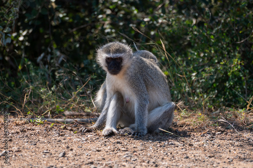 © Phillip, Obraz premium Monkey sitting on the side of road looking at tourists passing by