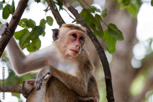 © Thisara, Fototapeta premium Monkey sitting on tree branch with the baby