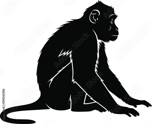 Fototapeta premium Monkey Sitting Wildlife Silhouette Vector