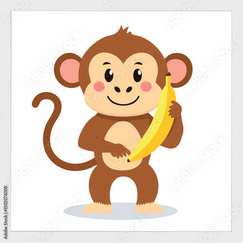 © Dustin, Fototapeta premium monkey standing and holding a banana while smiling