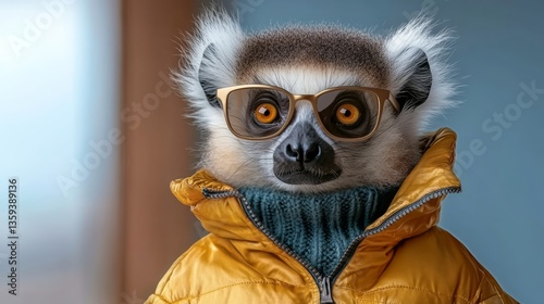 Fototapeta premium Monkey wearing glasses and a yellow jacket
