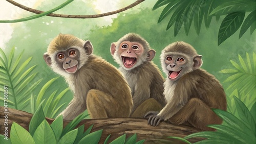 © picbox, Obraz premium monkeys animals set realistic watercolor painting