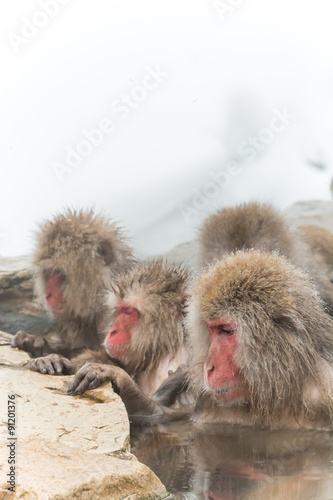 Fototapeta premium 露天風呂のおさるさん monkeys enjoying an outdoor bath