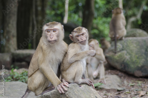 © maewshooter, Fototapeta premium monkeys family on hill park of Phuket