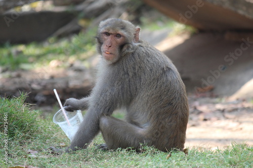 © PICHAYANON, Fototapeta premium Monkeys, live at public Thailand park Asia, it is eating food.