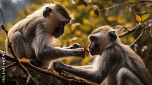 © KerXing, Obraz premium Monkeys perched on a tree branch