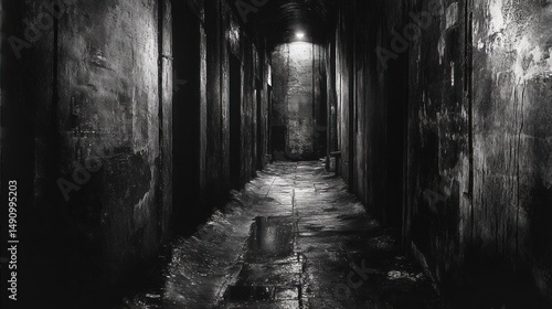 © nia, Obraz premium Monochromatic corridor with rough textures, evocative of history and mystery