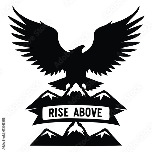 © MH Shipon, Obraz premium Monochromatic Emblem of a Soaring Eagle Above Mountains with Motivational Message