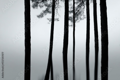 Obraz premium Monochromatic forest scene in mist