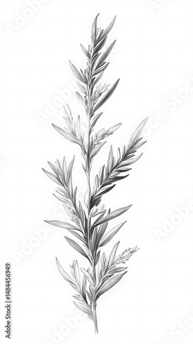 Fototapeta premium Monochromatic Leafy Branch Illustration with Botanical Composition