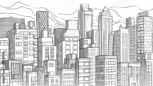© Oliver, Fototapeta premium Monochromatic Line Art Illustration of City Limits