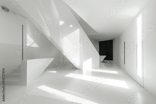 Obraz premium Monochromatic Luxury: Geometric Minimalist Bedroom in Clean White Loft