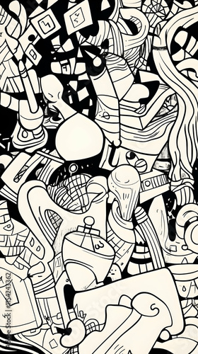 © Nadiyah, Obraz premium Monochrome abstract doodle art background design, urban scene, website banner.