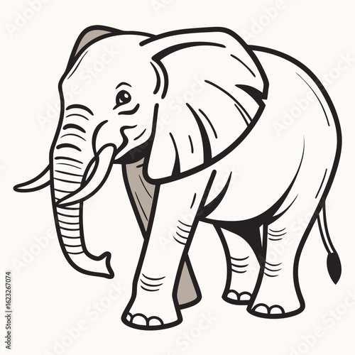 Obraz premium Monochrome art presents an African elephant walking against a soft white background
