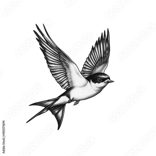 Obraz premium Monochrome Bird in Flight Elegant Black and White Avian Illustration