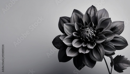 © Verdiana, Fototapeta premium monochrome bloom elegant black dahlia on pale gray backdrop floralart darkbloom
