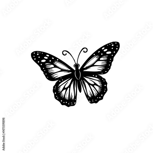 Obraz premium Monochrome butterfly illustration with dotted wing pattern against white void