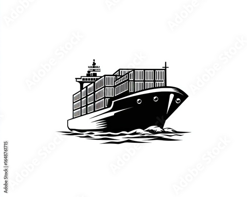 © ariya, Obraz premium Monochrome cargo ship illustration